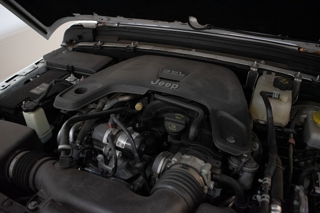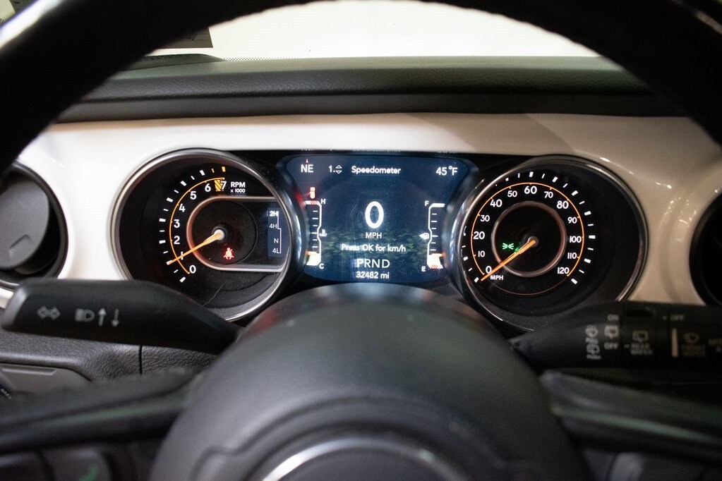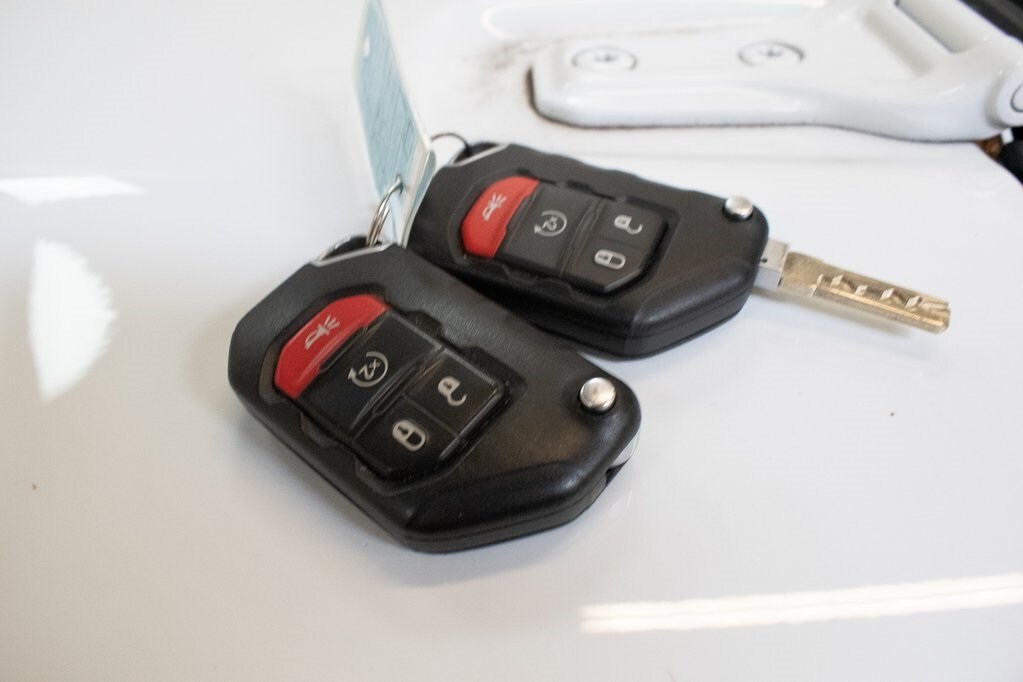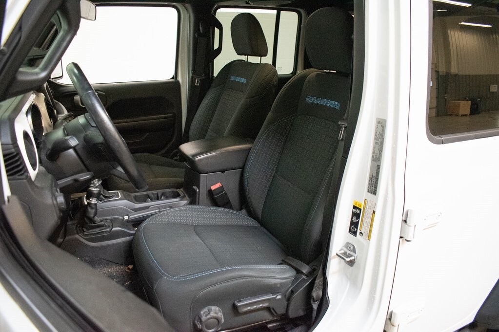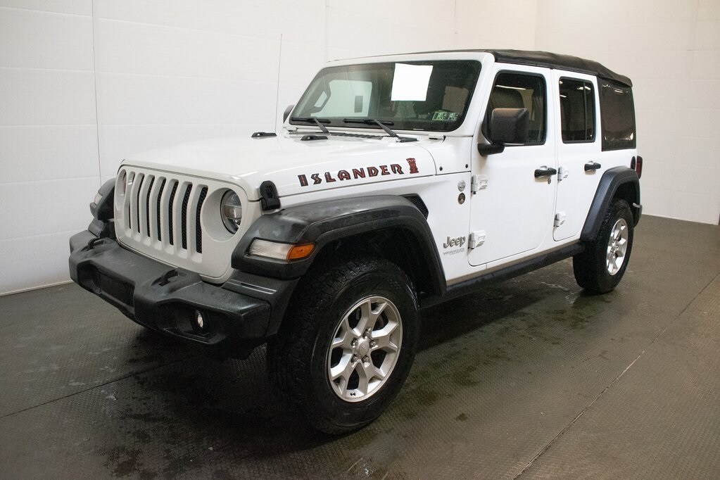 This Wrangler is well equipped with Cold Weather Group (Heated Front Seats and Heated Steering Wheel), Islander Package, LED Headlamp & Fog Lamp Group (Front LED Fog Lamps and LED Premium Reflector Headlamps), Quick Order Package 25J Islander (DISC) (7.0" Touchscreen Display, Air Conditioning w/Auto Temperature Control, Air Filtering, Apple CarPlay, Automatic Headlamps, Ceramic White I/P Bezels, Cloth Seats w/Islander Logo (DISC), Deep Tint Sunscreen Windows, Front 1-Touch Down Power Windows, Google Android Auto, GPS Antenna Input, Integrated Center Stack Radio, Islander Hood Decal, Islander Swing Gate Plaque, Leather Wrapped Steering Wheel, Power Heated Mirrors, Radio: Uconnect 4 w/7" Display, Remote Keyless Entry, Security Alarm, Selectable Tire Fill Alert, Silver Jeep Badges, Speed Sensitive Power Locks, Sun Visors w/Illuminated Vanity Mirrors, USB Host Flip, Wheels: 17" x 7.5" Silver Alloy (DISC), and Wrangler Decal), Technology Group (Cluster 7.0" TFT Color Display, For More Info, Call 800-643-2112, SiriusXM Radio Service, and SiriusXM Satellite Radio), 3.45 Rear Axle Ratio, 4-Wheel Disc Brakes, 8 Speakers, ABS brakes, Air Conditioning, AM/FM radio, Aux Battery, Brake assist, Cloth Low-Back Bucket Seats, Compass, Delay-off headlights, Driver door bin, Driver vanity mirror, Dual front impact airbags, Dual front side impact airbags, Electronic Stability Control, Freedom Panel Storage Bag, Front anti-roll bar, Front Bucket Seats, Front Center Armrest w/Storage, Front fog lights, Front reading lights, Integrated roll-over protection, Low tire pressure warning, No Soft Top, Non-Lock Fuel Cap w/o Discriminator, Normal Duty Suspension, Occupant sensing airbag, Outside temperature display, ParkView Rear Back-Up Camera, Passenger door bin, Passenger vanity mirror, Power steering, Radio data system, Radio: Uconnect 3 w/5" Display, Rear anti-roll bar, Rear reading lights, Rear Window Defroster, Rear Window Wiper/Washer, Speed control, Split folding rear seat, Steering wheel mounted audio controls, Stop-Start Dual Battery System, Tachometer, Telescoping steering wheel, Tilt steering wheel, Traction control, Trip computer, Variably intermittent wipers, Wheels: 17" x 7.5" Black Steel Styled, and White 3-Piece Hard Top (DISC).