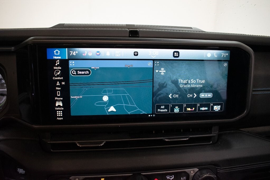 This Wrangler is well equipped with Quick Order Package 29N High Altitude, Navigation System, 3.73 Rear Axle Ratio, 4-Wheel Disc Brakes, 9 Speakers, ABS brakes, Air Conditioning, Alloy wheels, AM/FM radio: SiriusXM with 360L, Apple CarPlay/Android Auto, Auto High-beam Headlights, Auto-dimming Rear-View mirror, Automatic temperature control, Brake assist, Bumpers: body-color, Compass, Convertible HardTop, Delay-off headlights, Driver door bin, Driver vanity mirror, Dual front impact airbags, Dual front side impact airbags, Electronic Stability Control, Emergency communication system: Jeep Connect, Front anti-roll bar, Front Bucket Seats, Front Center Armrest w/Storage, Front dual zone A/C, Front fog lights, Front reading lights, Fully automatic headlights, Garage door transmitter, Glass rear window, Heated door mirrors, Heated front seats, Heated steering wheel, Illuminated entry, Integrated roll-over protection, Leather Shift Knob, Low tire pressure warning, Mopar Black Tubular Side Steps, Nappa Leather Seats, Occupant sensing airbag, Outside temperature display, Overhead airbag, Panic alarm, ParkView Rear Back-Up Camera, Passenger door bin, Passenger vanity mirror, Power door mirrors, Power driver seat, Power passenger seat, Power steering, Power windows, Radio data system, Radio: Uconnect 5 Nav w/12.3" Display, Rear anti-roll bar, Rear reading lights, Rear seat center armrest, Rear window defroster, Rear window wiper, Remote keyless entry, Security system, Sky 1-Touch Power Top, Speed control, Split folding rear seat, Sport Suspension, Steering wheel mounted audio controls, Tachometer, Telescoping steering wheel, Tilt steering wheel, Traction control, Trip computer, Turn signal indicator mirrors, Variably intermittent wipers, Voltmeter, and Wheels: 20" x 8" Machined/Painted Gray.