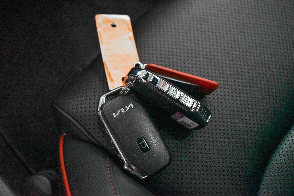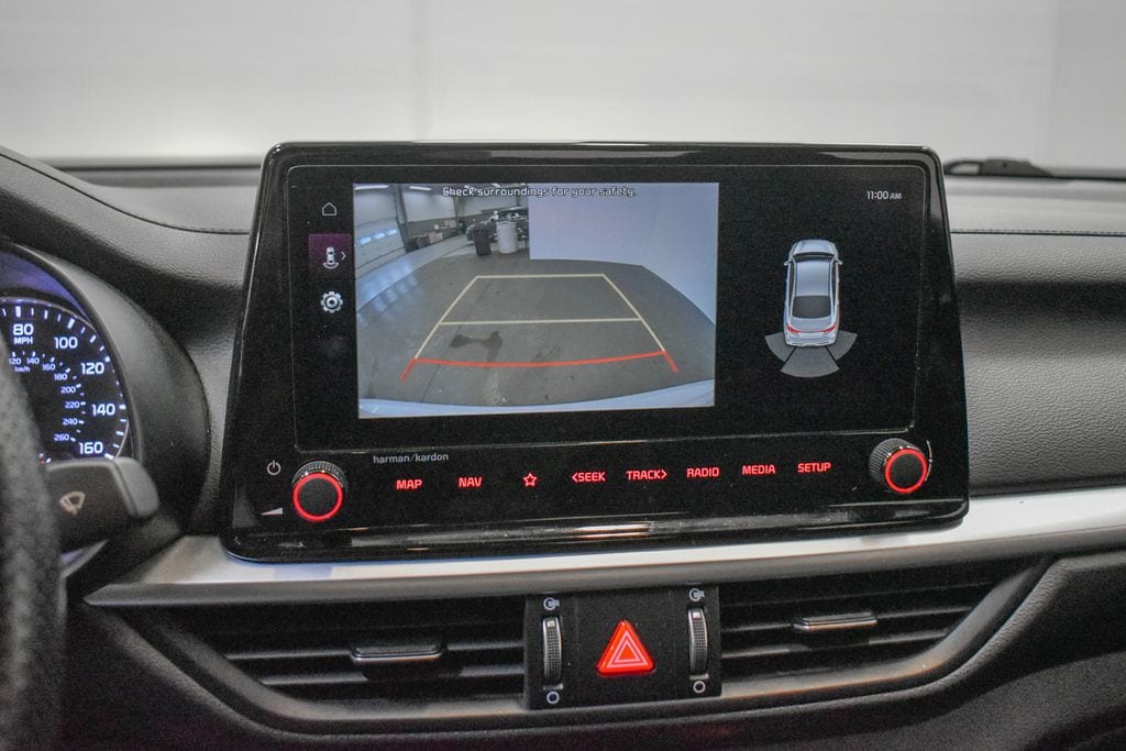 This Forte is well equipped with GT2 Package (10-Way Power Driver's Seat, Heated & Ventilated Front Seats, LED Interior Lighting, Parking Distance Warning-Reverse, Power Sunroof, Radio: harman kardon Premium Audio, and SynTex Seat Trim), Navigation System, 18" x 7.5J Alloy Wheels, 4-Wheel Disc Brakes, 6 Speakers, ABS brakes, Air Conditioning, Alloy wheels, AM/FM radio: SiriusXM, Apple CarPlay & Android Auto, Auto High-beam Headlights, Automatic temperature control, Brake assist, Bumpers: body-color, Carpet Floor Mats, Cloth & SynTex Seat Trim, Delay-off headlights, Driver door bin, Driver vanity mirror, Dual front impact airbags, Dual front side impact airbags, Electronic Stability Control, Emergency communication system, Exterior Parking Camera Rear, Four wheel independent suspension, Front anti-roll bar, Front Bucket Seats, Front Center Armrest, Front dual zone A/C, Front fog lights, Front reading lights, Fully automatic headlights, Heated door mirrors, Illuminated entry, Leather Shift Knob, Leather steering wheel, Low tire pressure warning, Occupant sensing airbag, Outside temperature display, Overhead airbag, Overhead console, Panic alarm, Passenger door bin, Passenger vanity mirror, Power door mirrors, Power steering, Power windows, Radio data system, Radio: 10.25" Display Audio, Rear anti-roll bar, Rear seat center armrest, Rear window defroster, Remote keyless entry, Security system, Speed control, Split folding rear seat, Spoiler, Sport steering wheel, Steering wheel mounted audio controls, Tachometer, Telescoping steering wheel, Tilt steering wheel, Traction control, Trip computer, Turn signal indicator mirrors, and Variably intermittent wipers.