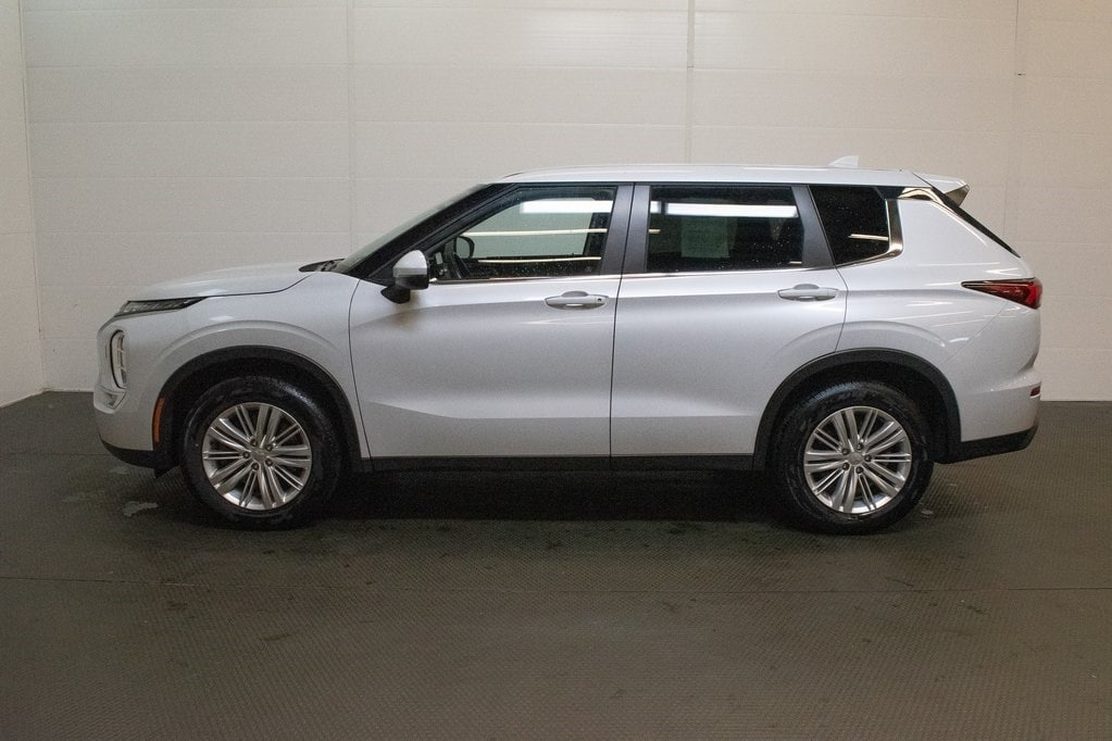 This Outlander is well equipped with 18" Alloy Wheels, 3rd row seats: split-bench, 4-Wheel Disc Brakes, 5.694 Axle Ratio, 6 Speakers, ABS brakes, Air Conditioning, Alloy wheels, AM/FM radio: SiriusXM, Android Auto & Apple CarPlay, Auto High-beam Headlights, Automatic temperature control, Blind Spot Warning, Brake assist, Bumpers: body-color, Cloth Fabric Seat Trim, Driver door bin, Driver vanity mirror, Dual front impact airbags, Dual front side impact airbags, Electronic Stability Control, Emergency communication system: Mitsubishi Connect w/ 24-month trial, Exterior Parking Camera Rear, Four wheel independent suspension, Front anti-roll bar, Front Bucket Seats, Front Center Armrest w/Storage, Front dual zone A/C, Front reading lights, Fully automatic headlights, Headlight cleaning, Illuminated entry, Knee airbag, Low tire pressure warning, Occupant sensing airbag, Outside temperature display, Overhead airbag, Overhead console, Panic alarm, Passenger door bin, Passenger vanity mirror, Power door mirrors, Power steering, Power windows, Radio data system, Radio: AM/FM 8.0" Smartphone Link Display Audio, Rear anti-roll bar, Rear Parking Sensors, Rear seat center armrest, Rear side impact airbag, Rear window defroster, Rear window wiper, Reclining 3rd row seat, Remote keyless entry, Security system, Speed control, Speed-Sensitive Wipers, Split folding rear seat, Spoiler, Steering wheel mounted audio controls, Tachometer, Telescoping steering wheel, Tilt steering wheel, Traction control, Trip computer, Turn signal indicator mirrors, and Variably intermittent wipers.