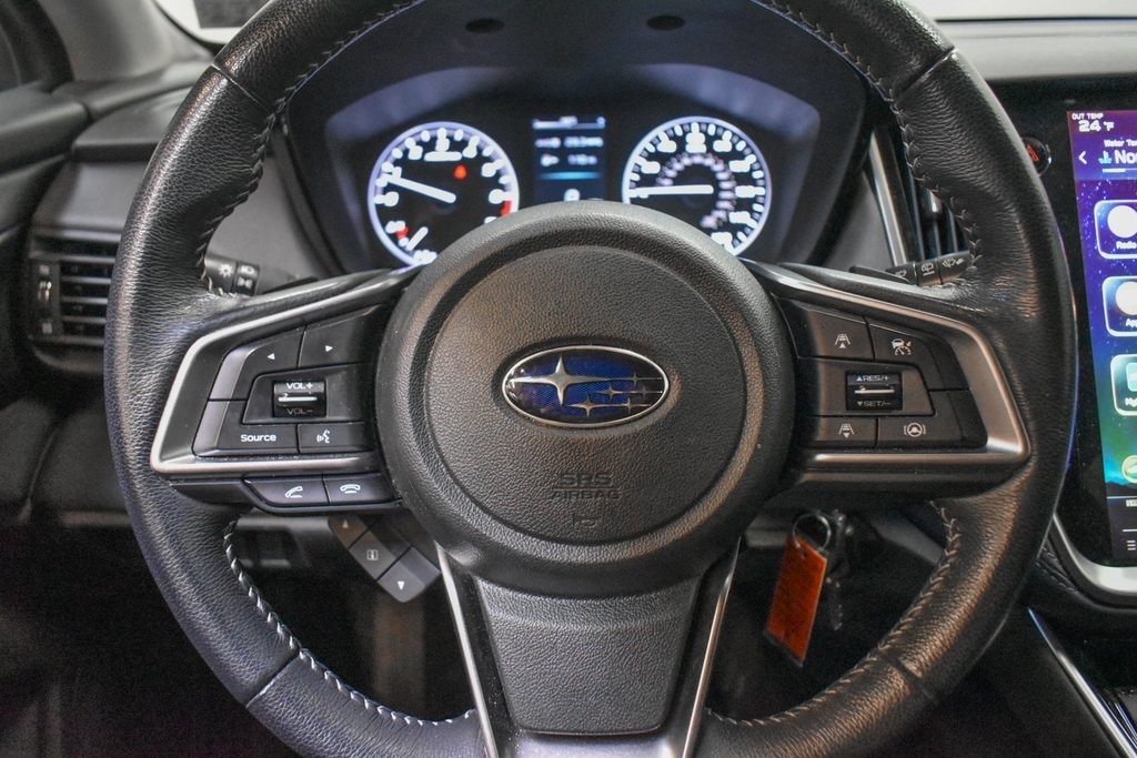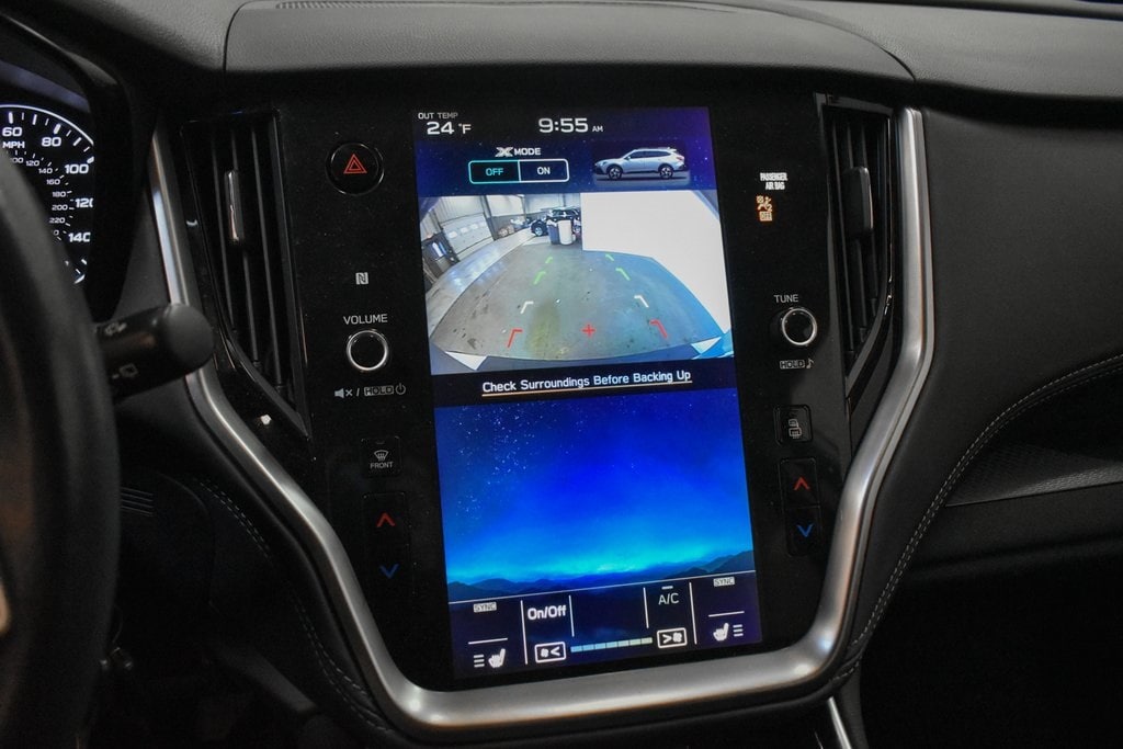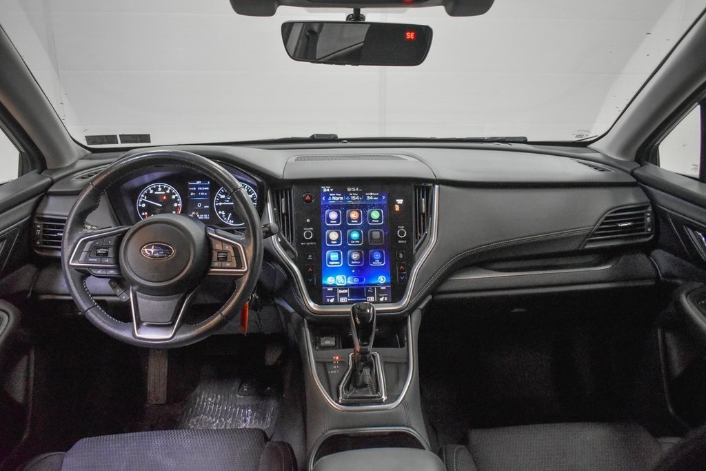 This Outback is well equipped with Popular Package #1 (All-Weather Floor Liners, Auto-Dimming Exterior Mirror w/Approach Light, Auto-Dimming Mirror w/Compass & HomeLink, Dome Light LED Upgrade, and Rear Bumper Cover), Standard Model, 3.90 Axle Ratio, 4-Wheel Disc Brakes, 6 Speakers, ABS brakes, Air Conditioning, Alloy wheels, AM/FM radio: SiriusXM, Auto High-beam Headlights, Automatic temperature control, Brake assist, Bumpers: body-color, Cloth Upholstery, Driver door bin, Driver vanity mirror, Dual front impact airbags, Dual front side impact airbags, Electronic Stability Control, Emergency communication system: STARLINK Safety and Security (Subscription Required), Exterior Parking Camera Rear, Four wheel independent suspension, Front anti-roll bar, Front Bucket Seats, Front Center Armrest w/Storage, Front dual zone A/C, Front fog lights, Front reading lights, Fully automatic headlights, Heated door mirrors, Heated Front Bucket Seats, Heated front seats, Illuminated entry, Knee airbag, Low tire pressure warning, Occupant sensing airbag, Outside temperature display, Overhead airbag, Overhead console, Panic alarm, Passenger door bin, Passenger vanity mirror, Power door mirrors, Power driver seat, Power steering, Power windows, Radio: Subaru STARLINK 11.6" Multimedia Plus Sys, Rear anti-roll bar, Rear Seat Back Protector, Rear seat center armrest, Rear window defroster, Rear window wiper, Remote keyless entry, Roof rack, Security system, Speed control, Speed-sensing steering, Splash Guards, Split folding rear seat, Spoiler, STARLINK/Apple CarPlay/Android Auto, Steering wheel mounted audio controls, Steering Wheel Paddle Shift Control Switches, Tachometer, Telescoping steering wheel, Tilt steering wheel, Traction control, Trip computer, Turn signal indicator mirrors, Variably intermittent wipers, and Wheels: 17" x 7J Black Aluminum Alloy.