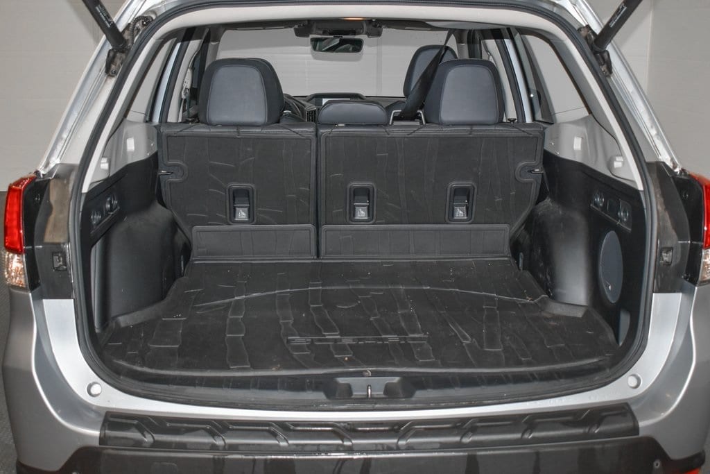 This Forester is well equipped with Audio Sys & Driver Assist Tech & Htd Steer Wheel (harman kardon 576W Amp & Speaker System, Heated Steering Wheel, Radio: Subaru Starlink 8.0" Multimedia Nav System, and Reverse Automatic Braking System (RAB)), Popular Package #3 (All-Weather Floor Liners, Auto-Dimming Exterior Mirror w/Approach Lighting, Auto-Dimming Mirror w/Compass & HomeLink, Cargo Net, Dome Light LED Upgrade, and Rear Bumper Cover), Navigation System, 3.70 Axle Ratio, 4-Wheel Disc Brakes, 6 Speakers, ABS brakes, Air Conditioning, Alloy wheels, AM/FM radio: SiriusXM, Auto High-beam Headlights, Automatic temperature control, Brake assist, Bumpers: body-color, CD player, Driver door bin, Driver vanity mirror, Dual front impact airbags, Dual front side impact airbags, Electronic Stability Control, Emergency communication system: STARLINK Safety and Security (Subscription Required), Exterior Parking Camera Rear, Four wheel independent suspension, Front anti-roll bar, Front Bucket Seats, Front Center Armrest, Front dual zone A/C, Front fog lights, Front reading lights, Fully automatic headlights, Heated door mirrors, Heated Front Bucket Seats, Heated front seats, Ice Silver Metallic Body Side Molding, Illuminated entry, Knee airbag, Leather Shift Knob, Low tire pressure warning, Occupant sensing airbag, Outside temperature display, Overhead airbag, Overhead console, Paddle-Shift Control Switches, Panic alarm, Passenger door bin, Passenger vanity mirror, Perforated Leather-Trimmed Upholstery, Power door mirrors, Power driver seat, Power Liftgate, Power moonroof: Panoramic, Power steering, Power windows, Radio data system, Radio: Subaru Starlink 8.0" Multimedia Plus System, Rear anti-roll bar, Rear seat center armrest, Rear Seatback Protector, Rear window defroster, Rear window wiper, Remote keyless entry, Roof rack: rails only, Security system, Speed control, Speed-sensing steering, Splash Guards, Split folding rear seat, Spoiler, STARLINK/Apple CarPlay/Android Auto, Steering wheel mounted audio controls, Tachometer, Telescoping steering wheel, Tilt steering wheel, Traction control, Trip computer, Turn signal indicator mirrors, Variably intermittent wipers, and Wheels: 18" x 7.0J Black Machine Finish Alum Alloy.