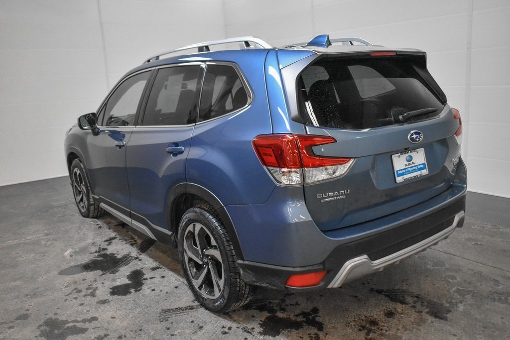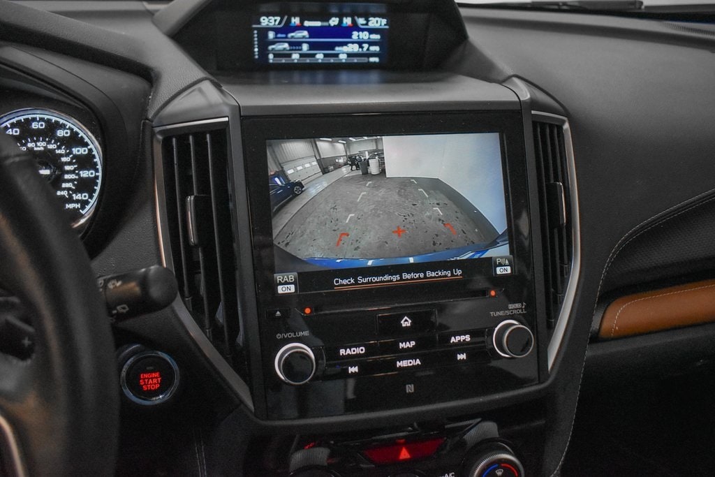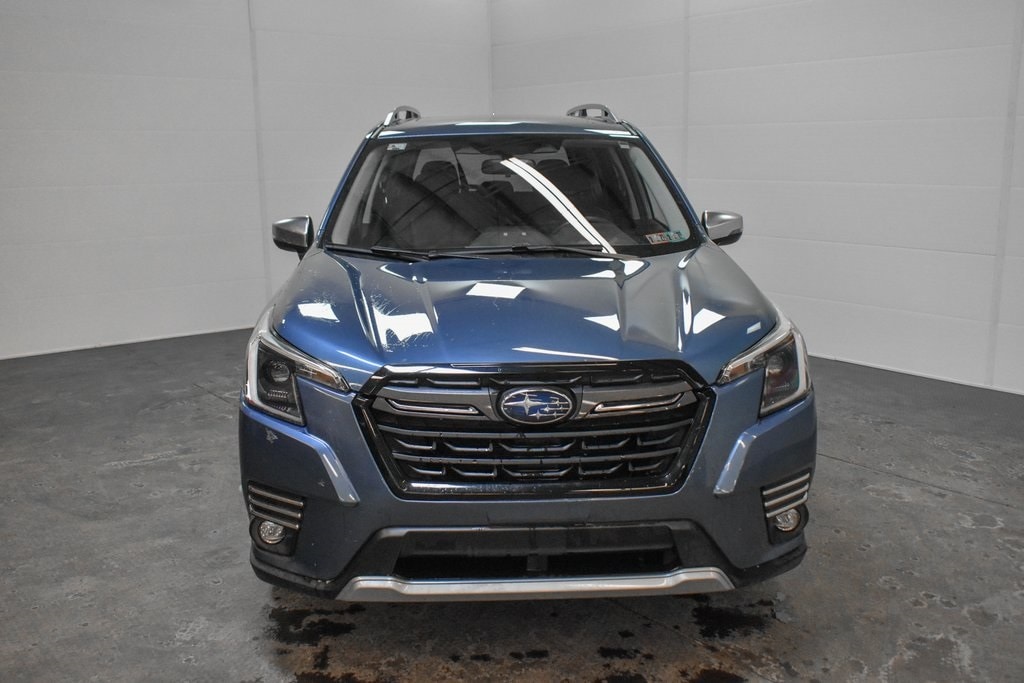 This Forester is well equipped with Standard Model, 3.70 Axle Ratio, 4-Wheel Disc Brakes, 9 Speakers, ABS brakes, Air Conditioning, Alloy wheels, AM/FM radio: SiriusXM, Anti-whiplash front head restraints, Auto High-beam Headlights, Automatic temperature control, Brake assist, Bumpers: body-color, CD player, Driver door bin, Driver vanity mirror, Dual front impact airbags, Dual front side impact airbags, Electronic Stability Control, Emergency communication system: STARLINK Safety and Security (Subscription Required), Exterior Parking Camera Rear, Four wheel independent suspension, Front anti-roll bar, Front Bucket Seats, Front Center Armrest, Front dual zone A/C, Front fog lights, Front reading lights, Fully automatic headlights, harman/kardon 576W Amp & Speaker System, harman/kardon® Speakers, Heated door mirrors, Heated Front Bucket Seats, Heated front seats, Heated rear seats, Heated steering wheel, HVAC memory, Illuminated entry, Knee airbag, Leather Shift Knob, Low tire pressure warning, Memory seat, Navigation System, Occupant sensing airbag, Outside temperature display, Overhead airbag, Overhead console, Panic alarm, Passenger door bin, Passenger vanity mirror, Perforated Leather-Trimmed Upholstery, Power door mirrors, Power driver seat, Power Liftgate, Power moonroof: Panoramic, Power passenger seat, Power steering, Power windows, Premium audio system: harman/kardon, Radio data system, Radio: Subaru Starlink 8.0" Multimedia Nav System, Rear anti-roll bar, Rear seat center armrest, Rear window defroster, Rear window wiper, Remote keyless entry, Roof rack: rails only, Security system, Speed control, Speed-sensing steering, Split folding rear seat, Spoiler, STARLINK/Apple CarPlay/Android Auto, Steering wheel mounted audio controls, Tachometer, Telescoping steering wheel, Tilt steering wheel, Traction control, Trip computer, Turn signal indicator mirrors, Variably intermittent wipers, and Wheels: 18" x 7.0J Dark Gray Machine Finish Alloy.