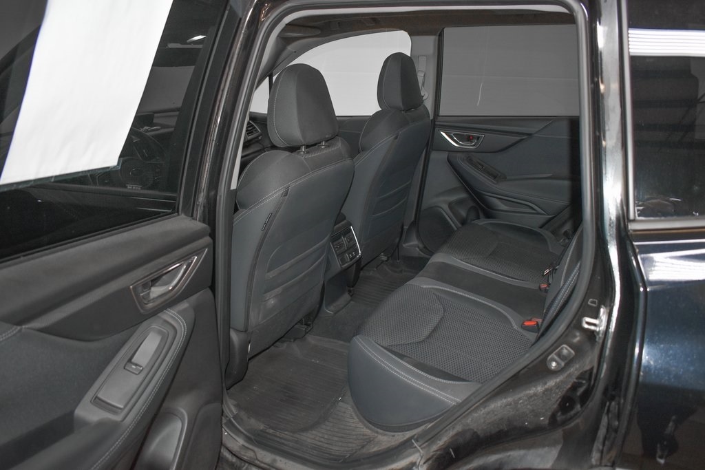 This Forester is well equipped with Blind Spot Detection w/RCTA & Power Rear Gate (Blind Spot Detection (BSD), Driver's Seatback Divided Pocket, Dual USB Charge Ports, EyeSight System, Multi-Function High Grade Display, and Power Rear Gate), Popular Package #1 (All-Weather Floor Liners, Auto-Dimming Exterior Mirror w/Approach Lighting, Auto-Dimming Mirror w/Compass & HomeLink, Cargo Tray, and Rear Bumper Cover), 3.70 Axle Ratio, 4-Wheel Disc Brakes, 6 Speakers, ABS brakes, Air Conditioning, Alloy wheels, AM/FM radio: SiriusXM, Anti-whiplash front head restraints, Auto High-beam Headlights, Automatic temperature control, Brake assist, Bumpers: body-color, CD player, Driver door bin, Driver vanity mirror, Dual front impact airbags, Dual front side impact airbags, Electronic Stability Control, Emergency communication system: STARLINK Safety and Security (Subscription Required), Exterior Parking Camera Rear, Four wheel independent suspension, Front anti-roll bar, Front Bucket Seats, Front Center Armrest, Front fog lights, Front reading lights, Fully automatic headlights, Heated door mirrors, Heated Front Bucket Seats, Heated front seats, Illuminated entry, Knee airbag, Low tire pressure warning, Occupant sensing airbag, Outside temperature display, Overhead airbag, Overhead console, Panic alarm, Passenger door bin, Passenger vanity mirror, Power door mirrors, Power driver seat, Power moonroof: Panoramic, Power steering, Power windows, Premium Cloth Upholstery, Radio data system, Radio: Subaru Starlink 6.5" Multimedia Plus System, Rear anti-roll bar, Rear seat center armrest, Rear window defroster, Rear window wiper, Remote keyless entry, Roof rack: rails only, Security system, Speed control, Speed-sensing steering, Splash Guards, Split folding rear seat, Spoiler, STARLINK/Apple CarPlay/Android Auto, Steering wheel mounted audio controls, Tachometer, Telescoping steering wheel, Tilt steering wheel, Traction control, Trip computer, Variably intermittent wipers, and Wheels: 17" x 7.0J Black Machine Finish Alloy.