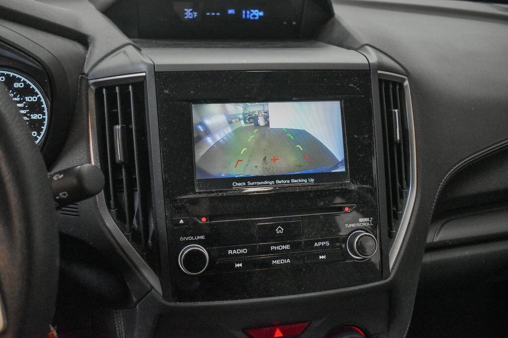 This Forester is well equipped with Alloy Wheel Package & Roof Rails (Black Finish Roof Rails and Wheels: 17" x 7.0J Silver Finish Aluminum Alloy), 3.70 Axle Ratio, 4 Speakers, 4-Wheel Disc Brakes, ABS brakes, Air Conditioning, AM/FM radio: SiriusXM, Anti-whiplash front head restraints, Auto High-beam Headlights, Automatic temperature control, Brake assist, Bumpers: body-color, CD player, Cloth Upholstery, Driver door bin, Driver vanity mirror, Dual front impact airbags, Dual front side impact airbags, Electronic Stability Control, Exterior Parking Camera Rear, Four wheel independent suspension, Front anti-roll bar, Front Bucket Seats, Front Center Armrest, Front reading lights, Fully automatic headlights, Illuminated entry, Knee airbag, Low tire pressure warning, Occupant sensing airbag, Outside temperature display, Overhead airbag, Overhead console, Panic alarm, Passenger door bin, Passenger vanity mirror, Power door mirrors, Power steering, Power windows, Radio data system, Radio: Subaru Starlink 6.5" Multimedia Plus System, Rear anti-roll bar, Rear window defroster, Rear window wiper, Remote keyless entry, Security system, Speed control, Speed-sensing steering, Split folding rear seat, STARLINK/Apple CarPlay/Android Auto, Steering wheel mounted audio controls, Tachometer, Telescoping steering wheel, Tilt steering wheel, Traction control, Trip computer, Variably intermittent wipers, and Wheels: 17" x 7.0J Steel w/Silver Full Wheel Cover.
