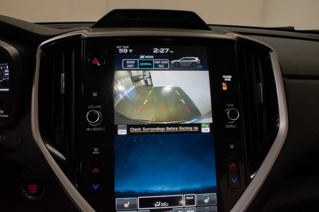 This Ascent is well equipped with Standard Model, 3rd row seats: bench, 4-Wheel Disc Brakes, 6 Speakers, ABS brakes, Air Conditioning, Alloy wheels, AM/FM radio: SiriusXM, Auto High-beam Headlights, Auto-Dimming Exterior Mirror w/Approach Light, Auto-dimming Rear-View mirror, Automatic temperature control, Axle Ratio: 4.44, Brake assist, Bumpers: body-color, Delay-off headlights, Driver door bin, Driver vanity mirror, Dual front impact airbags, Dual front side impact airbags, Electronic Stability Control, Emergency communication system: STARLINK Safety and Security (Subscription Required), Exterior Parking Camera Rear, Four wheel independent suspension, Front anti-roll bar, Front Bucket Seats, Front Center Armrest, Front dual zone A/C, Front fog lights, Front reading lights, Fully automatic headlights, Garage door transmitter: HomeLink, Heated door mirrors, Heated Front Bucket Seats, Heated front seats, Heated rear seats, Heated steering wheel, HVAC memory, Illuminated entry, Knee airbag, Leather Shift Knob, Leather steering wheel, Low tire pressure warning, Map & Reading Lights LED Upgrade - 6 Bulb Kit, Memory seat, Occupant sensing airbag, Outside temperature display, Overhead airbag, Overhead console, Panic alarm, Passenger door bin, Passenger vanity mirror, Perforated Leather-Trimmed Upholstery, Power door mirrors, Power driver seat, Power Liftgate, Power passenger seat, Power steering, Power windows, Radio data system, Radio: Subaru STARLINK 11.6" Multimedia Plus System, Rear air conditioning, Rear anti-roll bar, Rear reading lights, Rear seat center armrest, Rear window defroster, Rear window wiper, Reclining 3rd row seat, Remote keyless entry, Security system, Speed control, Speed-sensing steering, Splash Guards, Split folding rear seat, Spoiler, STARLINK/Apple CarPlay/Android Auto, Steering wheel mounted audio controls, Tachometer, Telescoping steering wheel, Tilt steering wheel, Traction control, Trip computer, Turn signal indicator mirrors, Variably intermittent wipers, Wheels: 20" x 7.5 J Dk Gray Alloy w/Machine Finish, and Wireless Charger.