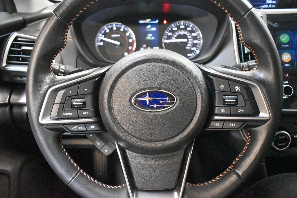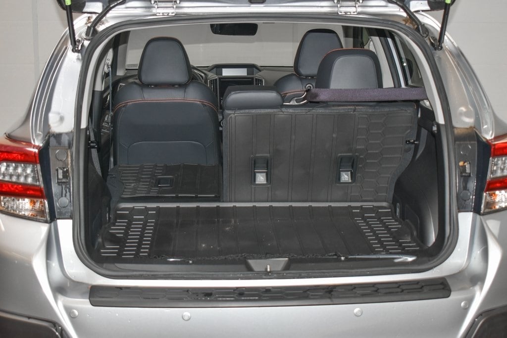 This Crosstrek is well equipped with Moonroof & Navigation & harman/kardon Audio (harman/kardon Speaker System, Power Moonroof, and Radio: Subaru STARLINK 8.0" Multimedia Nav System), Popular Package #4 (All-Weather Floor Liners, Auto-Dimming Exterior Mirror w/Approach Light, Auto-Dimming Mirror w/Compass & HomeLink, Map & Dome Lights LED Upgrade, Rear Bumper Cover, Rear Seatback Protector, and Splash Guards), 3.70 Axle Ratio, 4-Wheel Disc Brakes, 6 Speakers, ABS brakes, Aero Crossbar Set, Air Conditioning, Alloy wheels, AM/FM radio: SiriusXM, Anti-whiplash front head restraints, Auto High-beam Headlights, Automatic temperature control, Brake assist, Bumpers: body-color, Cargo Net, CD player, Driver door bin, Driver vanity mirror, Dual front impact airbags, Dual front side impact airbags, Electronic Stability Control, Emergency communication system: STARLINK Safety and Security (Subscription Required), Exterior Parking Camera Rear, Four wheel independent suspension, Front anti-roll bar, Front Bucket Seats, Front Center Armrest, Front fog lights, Front reading lights, Fully automatic headlights, Heated door mirrors, Heated Front Bucket Seats, Heated front seats, Illuminated entry, Knee airbag, Leather-Trimmed Upholstery, Low tire pressure warning, Occupant sensing airbag, Outside temperature display, Overhead airbag, Overhead console, Panic alarm, Passenger door bin, Passenger vanity mirror, Power door mirrors, Power driver seat, Power steering, Power windows, Radio data system, Radio: Subaru STARLINK 8.0" Multimedia Plus System, Rear anti-roll bar, Rear seat center armrest, Rear window defroster, Rear window wiper, Remote keyless entry, Security system, Speed control, Speed-sensing steering, Split folding rear seat, Spoiler, STARLINK/Apple CarPlay/Android Auto, Steering wheel mounted audio controls, Tachometer, Telescoping steering wheel, Tilt steering wheel, Traction control, Trip computer, Turn signal indicator mirrors, Variably intermittent wipers, and Wheels: 18" x 7.0J Alum Alloy Blk w/Machine Finish.