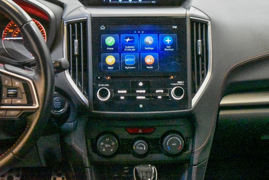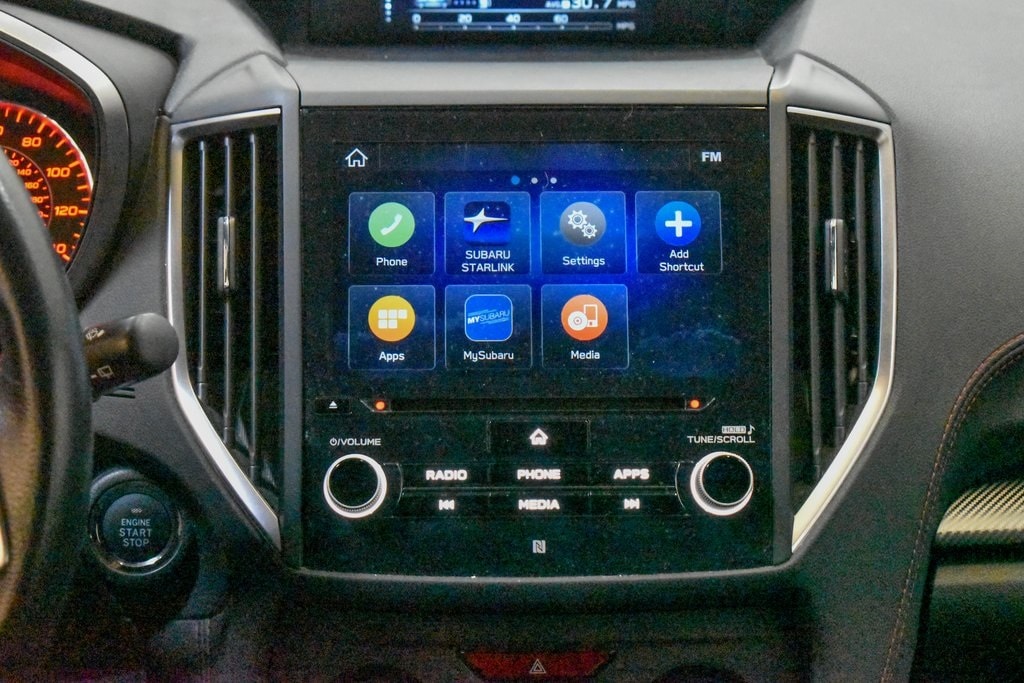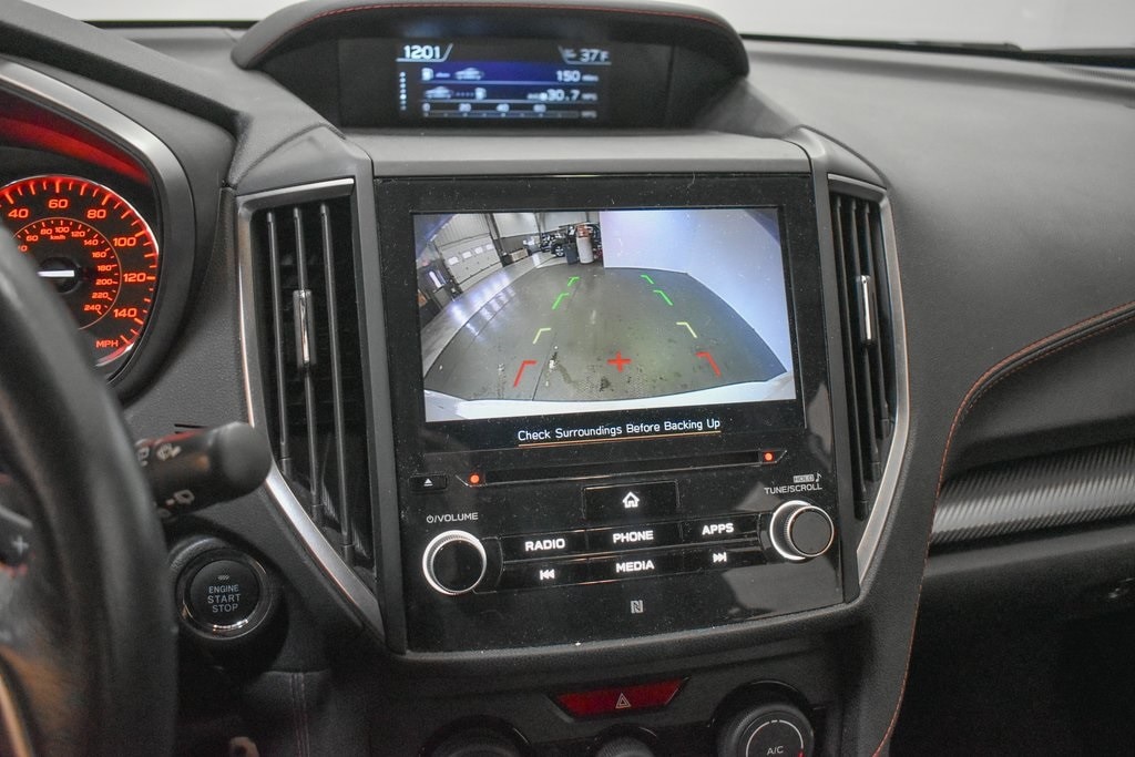 This Impreza is well equipped with Moonroof & BSD/RCTA & HK Audio & Power Driver Seat (6-Way Power Driver's Seat, Blind Spot Detection (BSD), EyeSight System, harman/kardon Speaker System, Overhead Console Shower Light, Power Moonroof, and Rear Cross-Traffic Alert (RCTA) System), 4-Wheel Disc Brakes, 6 Speakers, ABS brakes, Aero Splash Guards, Air Conditioning, Alloy wheels, AM/FM radio: SiriusXM, Anti-whiplash front head restraints, Auto-Dimming Mirror w/Compass & HomeLink, Brake assist, Bumpers: body-color, Cargo Tray, CD player, Delay-off headlights, Driver door bin, Driver vanity mirror, Dual front impact airbags, Dual front side impact airbags, Electronic Stability Control, Emergency communication system, Exterior Parking Camera Rear, Four wheel independent suspension, Front anti-roll bar, Front Bucket Seats, Front Center Armrest, Front reading lights, Fully automatic headlights, Heated door mirrors, Heated Front Bucket Seats, Heated front seats, Illuminated entry, Knee airbag, Leather Shift Knob, Low tire pressure warning, Occupant sensing airbag, Outside temperature display, Overhead airbag, Overhead console, Panic alarm, Passenger door bin, Passenger vanity mirror, Power door mirrors, Power steering, Power windows, Radio data system, Radio: Subaru STARLINK 8.0" Multimedia Plus System, Rear anti-roll bar, Rear Seatback Protector, Rear window defroster, Rear window wiper, Remote keyless entry, Security system, Speed control, Speed-sensing steering, Split folding rear seat, Spoiler, Sport Cloth Upholstery, STARLINK/Apple CarPlay/Android Auto, Steering wheel mounted audio controls, Tachometer, Telescoping steering wheel, Tilt steering wheel, Traction control, Trip computer, Turn signal indicator mirrors, Variably intermittent wipers, and Wheels: 18" x 7.5" Machine Finish J Aluminum-Alloy.