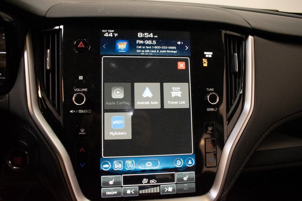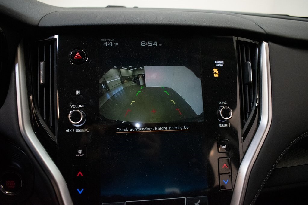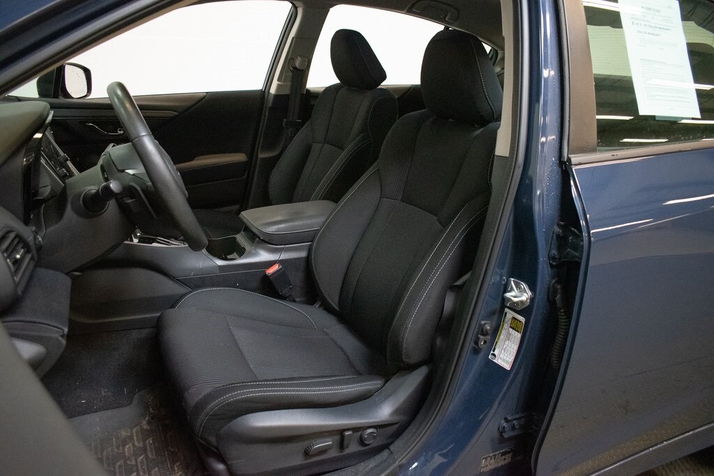 This Legacy is well equipped with BSD w/RCTA & Keyless Access & LED Fog Lights (Black Fog Light Aerodynamic Covers w/Inserts, Blind Spot Detection (BSD), EyeSight System, Keyless Access w/Push Button Start, LED Fog Lights, and Rear Cross Traffic Alert (RCTA)), 4-Wheel Disc Brakes, 6 Speakers, ABS brakes, Air Conditioning, All-Weather Floor Liners, Alloy wheels, AM/FM radio: SiriusXM, Anti-whiplash front head restraints, Auto High-beam Headlights, Automatic temperature control, Brake assist, Bumpers: body-color, Cargo Tray, Cloth Upholstery, Driver door bin, Driver vanity mirror, Dual front impact airbags, Dual front side impact airbags, Electronic Stability Control, Emergency communication system: STARLINK Safety Plus (3-year free trial), Exterior Parking Camera Rear, Four wheel independent suspension, Front anti-roll bar, Front Bucket Seats, Front Center Armrest w/Storage, Front dual zone A/C, Front reading lights, Fully automatic headlights, Heated door mirrors, Heated Front Bucket Seats, Heated front seats, Illuminated entry, Knee airbag, Leather steering wheel, Low tire pressure warning, Occupant sensing airbag, Outside temperature display, Overhead airbag, Overhead console, Panic alarm, Passenger door bin, Passenger vanity mirror, Power door mirrors, Power driver seat, Power steering, Power windows, Radio: Subaru STARLINK 11.6" Multimedia Plus Sys, Rear anti-roll bar, Rear Bumper Applique, Rear seat center armrest, Rear Seatback Protector, Rear window defroster, Remote keyless entry, Security system, Speed control, Speed-sensing steering, Splash Guards, Split folding rear seat, Steering wheel mounted audio controls, Tachometer, Telescoping steering wheel, Tilt steering wheel, Traction control, Trip computer, Turn signal indicator mirrors, Variably intermittent wipers, and Wheels: 17" x 7.5J Aluminum-Alloy Black.