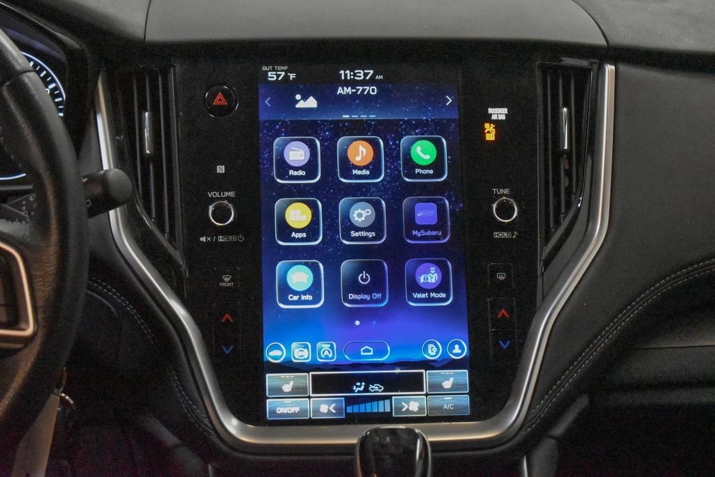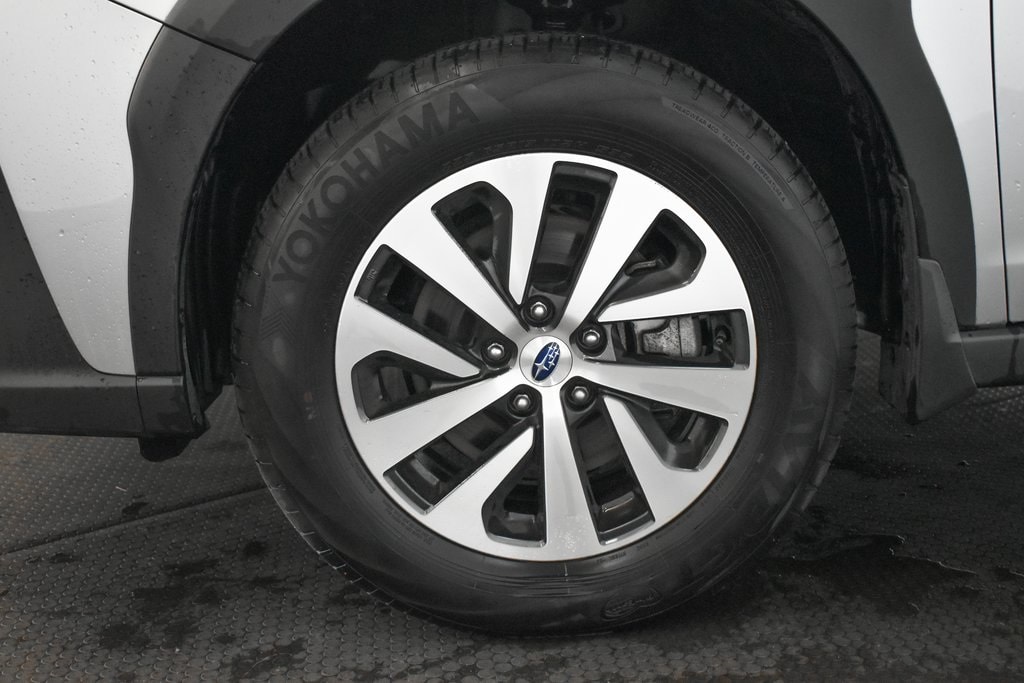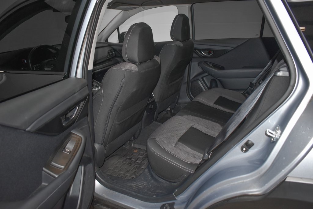 This Outback is well equipped with Standard Model, 3.90 Axle Ratio, 4-Wheel Disc Brakes, 6 Speakers, ABS brakes, Air Conditioning, All-Weather Floor Liners, Alloy wheels, AM/FM radio: SiriusXM, Auto High-beam Headlights, Automatic temperature control, Brake assist, Bumpers: body-color, Cloth Upholstery, Driver door bin, Driver vanity mirror, Dual front impact airbags, Dual front side impact airbags, Electronic Stability Control, Emergency communication system: STARLINK Safety Plus (3-year free trial), Exterior Parking Camera Rear, Four wheel independent suspension, Front anti-roll bar, Front Bucket Seats, Front Center Armrest w/Storage, Front dual zone A/C, Front fog lights, Front reading lights, Fully automatic headlights, Heated door mirrors, Heated Front Bucket Seats, Heated front seats, Illuminated entry, Knee airbag, Leather Shift Knob, Leather steering wheel, Low tire pressure warning, Occupant sensing airbag, Outside temperature display, Overhead airbag, Overhead console, Panic alarm, Passenger door bin, Passenger vanity mirror, Power door mirrors, Power driver seat, Power steering, Power windows, Radio: Subaru STARLINK 11.6" Multimedia Plus Sys, Rear anti-roll bar, Rear Bumper Cover, Rear Seat Back Protector, Rear seat center armrest, Rear window defroster, Rear window wiper, Remote keyless entry, Roof rack, Security system, Speed control, Speed-sensing steering, Splash Guards, Split folding rear seat, Spoiler, Steering wheel mounted audio controls, Steering Wheel Paddle Shift Control Switches, Tachometer, Telescoping steering wheel, Tilt steering wheel, Traction control, Trip computer, Turn signal indicator mirrors, Variably intermittent wipers, and Wheels: 17" x 7J Black Aluminum Alloy.