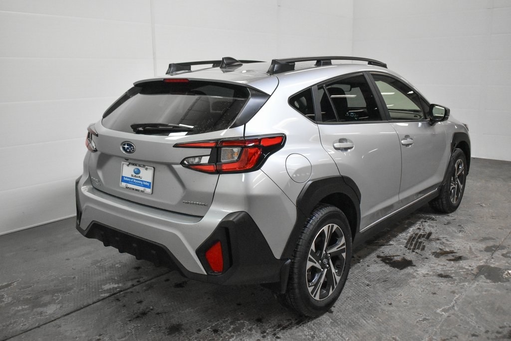 This Crosstrek is well equipped with Crosstrek Mirror Package (Auto-Dimming Exterior Mirror w/Approach Light and Auto-Dimming Mirror w/Compass & HomeLink), Standard Model, 3.90 Axle Ratio, 4-Wheel Disc Brakes, 6 Speakers, ABS brakes, Air Conditioning, All-Weather Floor Liners, Alloy wheels, AM/FM radio: SiriusXM, Anti-whiplash front head restraints, Auto High-beam Headlights, Automatic temperature control, Brake assist, Bumpers: body-color, Driver door bin, Driver vanity mirror, Dual front impact airbags, Dual front side impact airbags, Electronic Stability Control, Emergency communication system: STARLINK Safety and Security (Subscription Required), Exterior Parking Camera Rear, Four wheel independent suspension, Front anti-roll bar, Front Bucket Seats, Front Center Armrest, Front dual zone A/C, Front fog lights, Front reading lights, Fully automatic headlights, Illuminated entry, Knee airbag, Low tire pressure warning, Occupant sensing airbag, Outside temperature display, Overhead airbag, Overhead console, Panic alarm, Passenger door bin, Passenger vanity mirror, Power door mirrors, Power steering, Power windows, Premium Cloth Upholstery, Radio data system, Radio: Subaru STARLINK 11.6" Multimedia Plus Sys, Rear anti-roll bar, Rear seat center armrest, Rear window defroster, Rear window wiper, Remote keyless entry, Security system, Speed control, Speed-sensing steering, Splash Guards, Split folding rear seat, Spoiler, STARLINK/Apple CarPlay/Android Auto, Steering wheel mounted audio controls, Tachometer, Telescoping steering wheel, Tilt steering wheel, Traction control, Trip computer, Turn signal indicator mirrors, Variably intermittent wipers, and Wheels: 17" x 7.0J Dark Gray Aluminum Alloy.