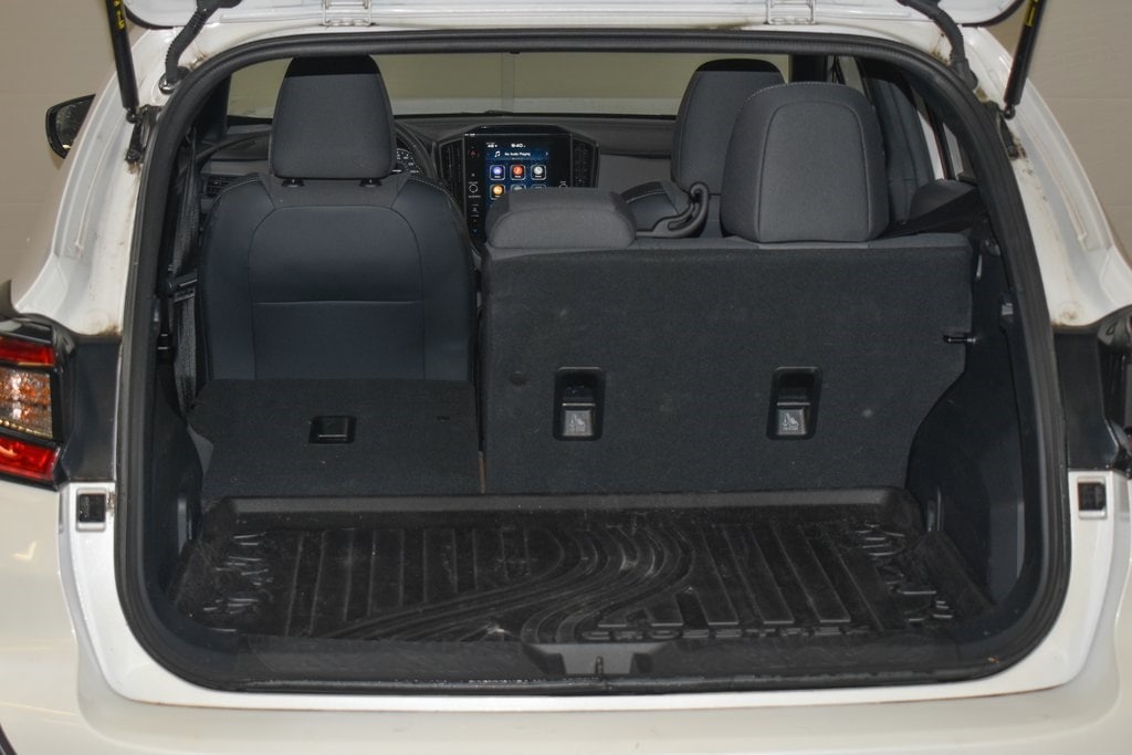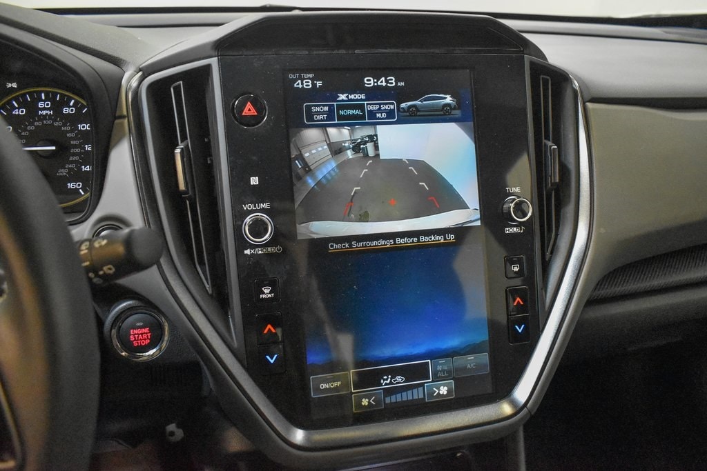 This Crosstrek is well equipped with BSD/RCTA & Power Driver Seat & Power Moonroof (10-Way Power Driver's Seat, Blind Spot Detection w/Rear Cross-Traffic Alert, and Power Moonroof), 3.70 Axle Ratio, 4-Wheel Disc Brakes, 6 Speakers, ABS brakes, Air Conditioning, Alloy wheels, AM/FM radio: SiriusXM, Anti-whiplash front head restraints, Auto High-beam Headlights, Automatic temperature control, Brake assist, Bumpers: body-color, Driver door bin, Driver vanity mirror, Dual front impact airbags, Dual front side impact airbags, Electronic Stability Control, Emergency communication system: STARLINK Safety and Security (Subscription Required), Exterior Parking Camera Rear, Four wheel independent suspension, Front anti-roll bar, Front Bucket Seats, Front Center Armrest, Front dual zone A/C, Front fog lights, Front reading lights, Fully automatic headlights, Heated door mirrors, Heated Front Bucket Seats, Heated front seats, Illuminated entry, Knee airbag, Leather Shift Knob, Low tire pressure warning, Occupant sensing airbag, Outside temperature display, Overhead airbag, Overhead console, Panic alarm, Passenger door bin, Passenger vanity mirror, Power door mirrors, Power steering, Power windows, Radio data system, Radio: Subaru STARLINK 11.6" Multimedia Plus Sys, Rear anti-roll bar, Rear seat center armrest, Rear window defroster, Rear window wiper, Remote keyless entry, Security system, Speed control, Speed-sensing steering, Split folding rear seat, Spoiler, Sport Cloth Upholstery, STARLINK/Apple CarPlay/Android Auto, Steering wheel mounted audio controls, Tachometer, Telescoping steering wheel, Tilt steering wheel, Traction control, Trip computer, Turn signal indicator mirrors, Variably intermittent wipers, and Wheels: 18" x 7.0J Dark Gray Aluminum Alloy.