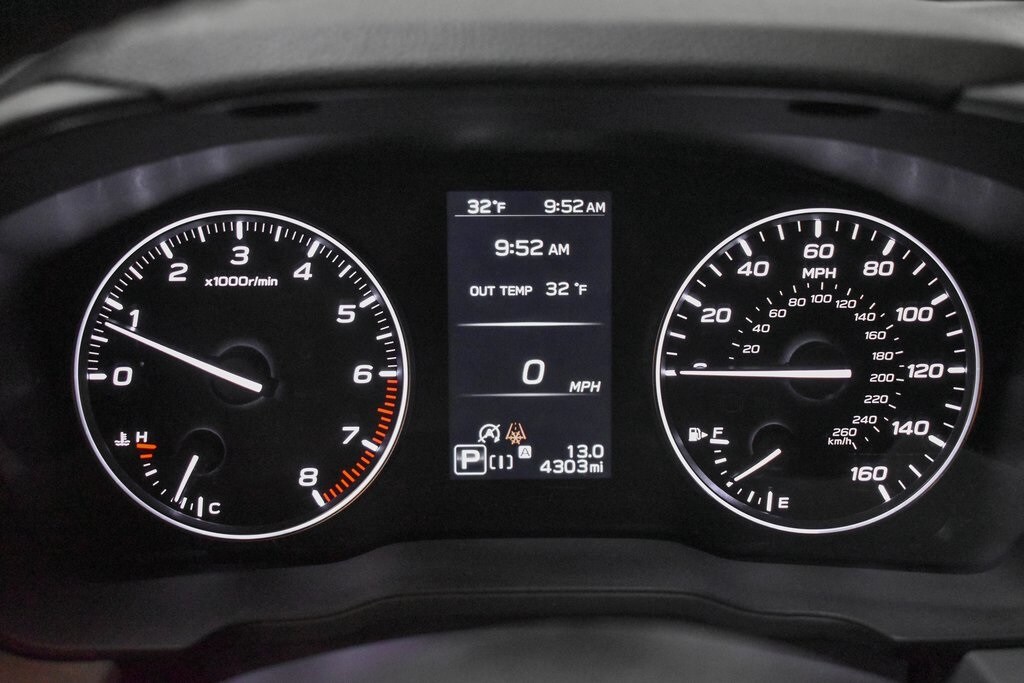 This Crosstrek is well equipped with harman/kardon Audio & Power Moonroof (harman/kardon Surround Sound Speaker System and Power Moonroof), 3.70 Axle Ratio, 4-Wheel Disc Brakes, 6 Speakers, ABS brakes, Air Conditioning, Alloy wheels, AM/FM radio: SiriusXM, Anti-whiplash front head restraints, Auto High-beam Headlights, Automatic temperature control, Brake assist, Bumpers: body-color, Driver door bin, Driver vanity mirror, Dual front impact airbags, Dual front side impact airbags, Electronic Stability Control, Emergency communication system: STARLINK Safety and Security (Subscription Required), Exterior Parking Camera Rear, Four wheel independent suspension, Front anti-roll bar, Front Bucket Seats, Front Center Armrest, Front dual zone A/C, Front fog lights, Front reading lights, Fully automatic headlights, Heated door mirrors, Heated Front Bucket Seats, Heated front seats, Illuminated entry, Knee airbag, Leather Shift Knob, Leather-Trimmed Upholstery, Low tire pressure warning, Occupant sensing airbag, Outside temperature display, Overhead airbag, Overhead console, Panic alarm, Passenger door bin, Passenger vanity mirror, Power door mirrors, Power driver seat, Power steering, Power windows, Radio data system, Radio: Subaru STARLINK 11.6" Multimedia Plus Sys, Rear anti-roll bar, Rear seat center armrest, Rear window defroster, Rear window wiper, Remote keyless entry, Security system, Speed control, Speed-sensing steering, Split folding rear seat, Spoiler, STARLINK/Apple CarPlay/Android Auto, Steering wheel mounted audio controls, Tachometer, Telescoping steering wheel, Tilt steering wheel, Traction control, Trip computer, Turn signal indicator mirrors, Variably intermittent wipers, and Wheels: 18" x 7.0J Dark Gray Aluminum Alloy.