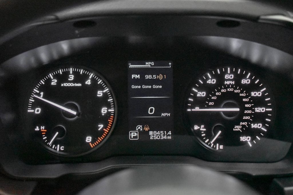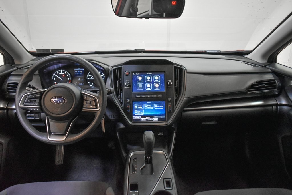 This Impreza is well equipped with Popular Package #2 (DISC) (All-Weather Floor Liners, Auto-Dimming Exterior Mirror w/Approach Light, Auto-Dimming Mirror w/Compass & HomeLink, and LED Upgrade), 4 Speakers, 4-Wheel Disc Brakes, ABS brakes, Air Conditioning, Alloy Wheels, AM/FM radio: SiriusXM, Anti-whiplash front head restraints, Auto High-beam Headlights, Automatic temperature control, Brake assist, Bumpers: body-color, Cloth Upholstery, Driver door bin, Driver vanity mirror, Dual front impact airbags, Dual front side impact airbags, Electronic Stability Control, Exterior Parking Camera Rear, Four wheel independent suspension, Front anti-roll bar, Front Bucket Seats, Front Center Armrest, Front dual zone A/C, Front reading lights, Fully automatic headlights, Illuminated entry, Knee airbag, Low tire pressure warning, Occupant sensing airbag, Outside temperature display, Overhead airbag, Overhead console, Panic alarm, Passenger door bin, Passenger vanity mirror, Power door mirrors, Power steering, Power windows, Radio data system, Radio: Subaru STARLINK Dual 7.0" Multimedia System, Rear Seatback Protector, Rear window defroster, Rear window wiper, Remote keyless entry, Security system, Speed control, Speed-sensing steering, Split folding rear seat, Spoiler, STARLINK/Apple CarPlay/Android Auto, Steering wheel mounted audio controls, Tachometer, Telescoping steering wheel, Tilt steering wheel, Traction control, Trip computer, Variably intermittent wipers, and Wheels: 16" x 6.0" Full Cap 1/2 J Steel.