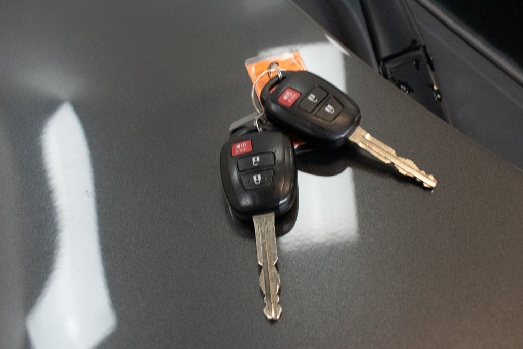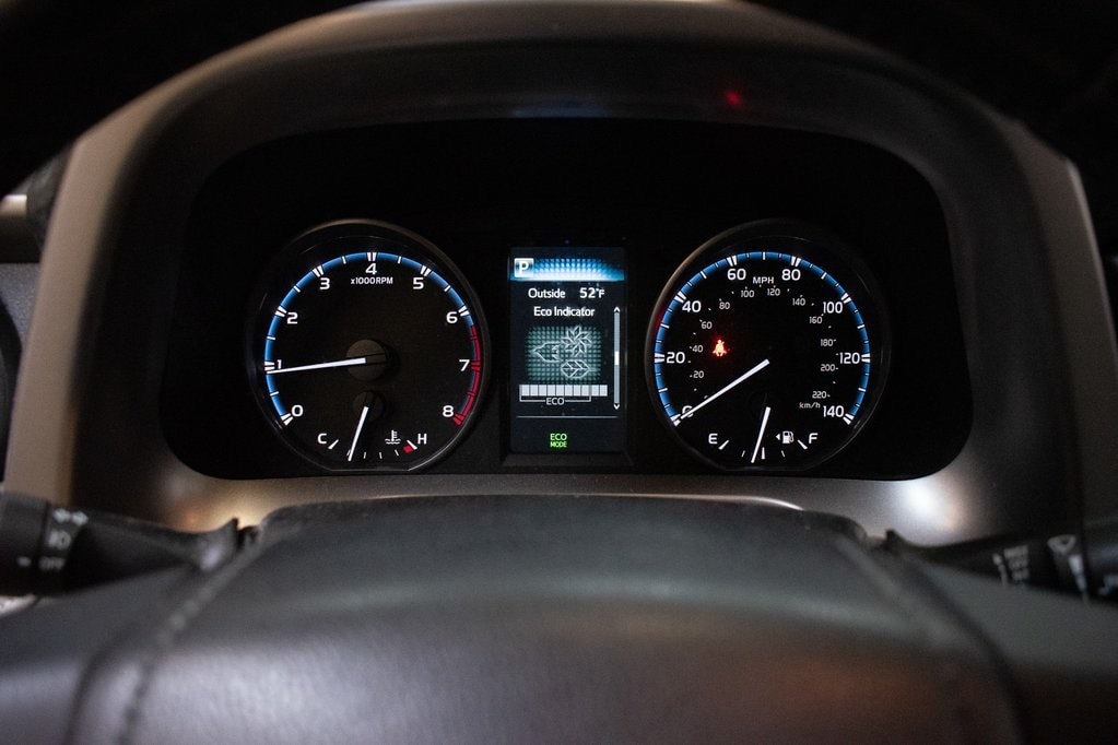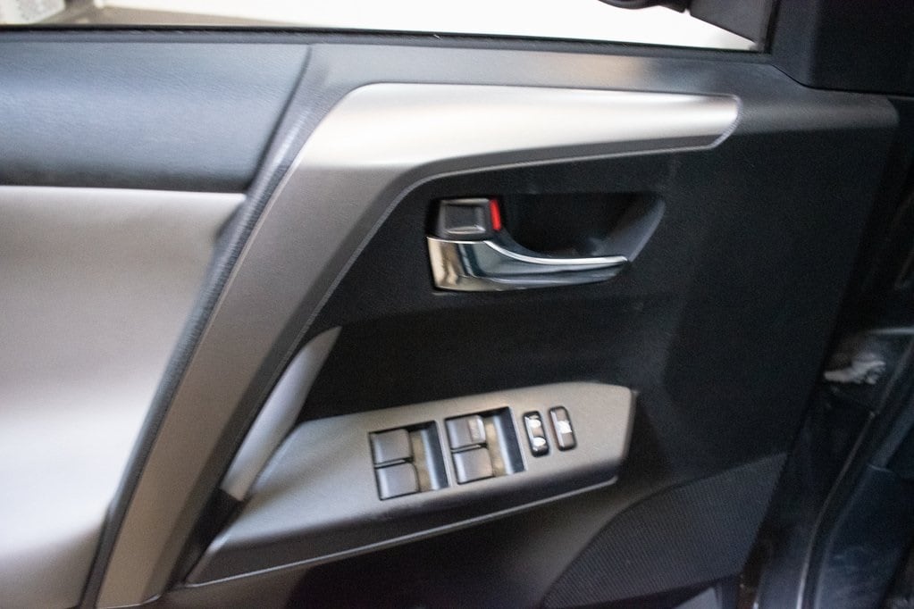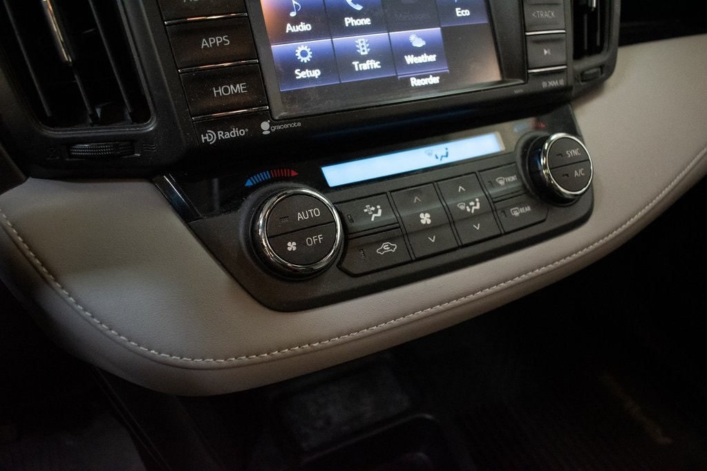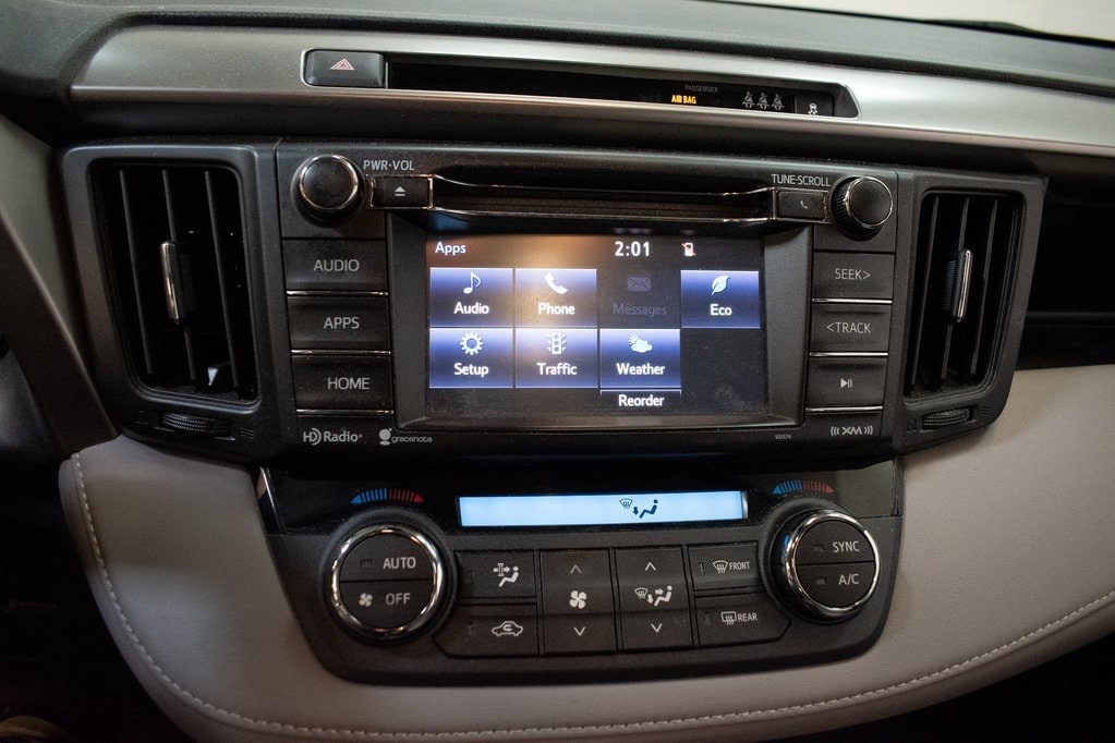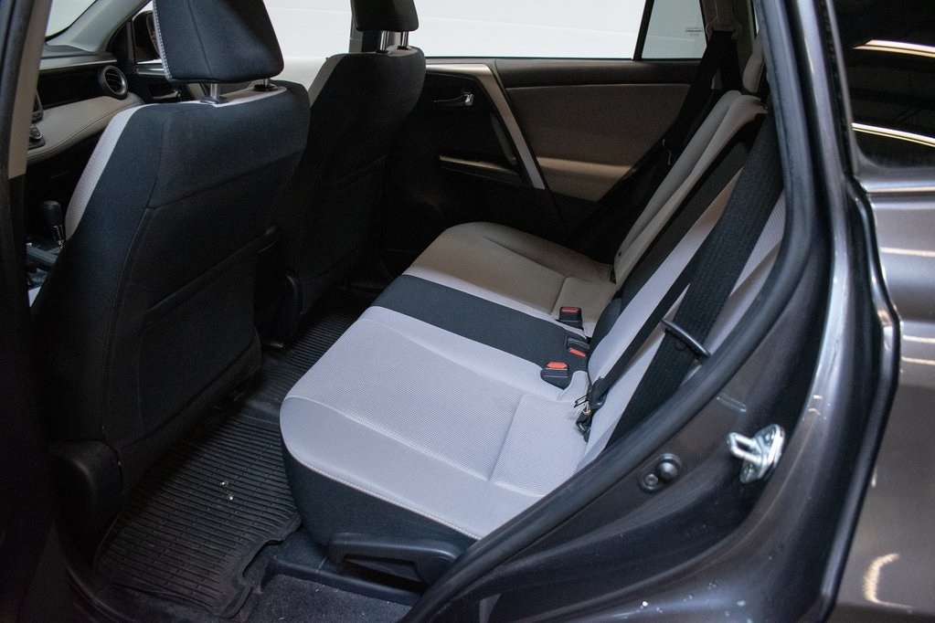 This RAV4 is well equipped with 4-Wheel Disc Brakes, 4.071 Axle Ratio, 6 Speakers, ABS brakes, Air Conditioning, Alloy wheels, AM/FM radio, Auto High-beam Headlights, Automatic temperature control, Brake assist, Bumpers: body-color, CD player, Driver door bin, Driver vanity mirror, Dual front impact airbags, Dual front side impact airbags, Electronic Stability Control, Exterior Parking Camera Rear, Fabric Seat Trim, Four wheel independent suspension, Front anti-roll bar, Front Bucket Seats, Front Center Armrest, Front dual zone A/C, Front fog lights, Front reading lights, Front Sport Seats, Fully automatic headlights, Heated door mirrors, Illuminated entry, Knee airbag, Leather steering wheel, Low tire pressure warning, Occupant sensing airbag, Outside temperature display, Overhead airbag, Overhead console, Panic alarm, Passenger door bin, Passenger vanity mirror, Power door mirrors, Power moonroof, Power steering, Power windows, Radio data system, Radio: Entune AM/FM/CD/MP3/WMA Playback w/6 Speakers, Radio: Entune Audio Plus AM/FM/MP3/WMA Playback, Rear anti-roll bar, Rear seat center armrest, Rear window defroster, Rear window wiper, Remote keyless entry, Speed control, Speed-sensing steering, Split folding rear seat, Spoiler, Steering wheel mounted audio controls, Tachometer, Telescoping steering wheel, Tilt steering wheel, Traction control, Trip computer, Turn signal indicator mirrors, Variably intermittent wipers, and Wheels: 17" x 7.0J 5-Spoke Superchrome Alloy.