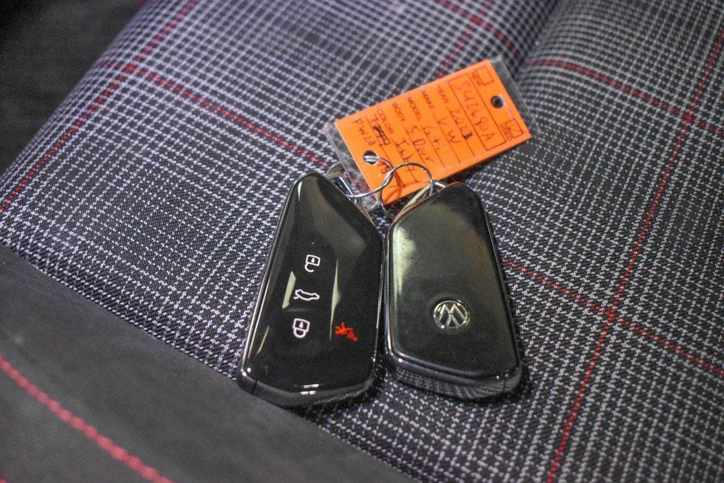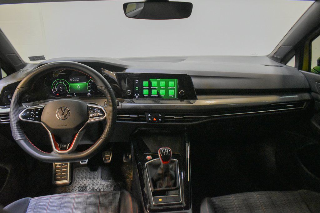This Golf GTI is well equipped with 4-Wheel Disc Brakes, 7 Speakers, ABS brakes, Air Conditioning, Alloy wheels, AM/FM radio, Auto-dimming Rear-View mirror, Automatic temperature control, Brake assist, Bumpers: body-color, Cloth Seating Surfaces, Compass, Delay-off headlights, Driver door bin, Driver vanity mirror, Dual front impact airbags, Dual front side impact airbags, Electronic Stability Control, Emergency communication system: VW Car-Net Safe & Secure 5-year, Exterior Parking Camera Rear, Forward collision: FCW w/Autonomous Emergency Braking mitigation, Four wheel independent suspension, Front anti-roll bar, Front Bucket Seats, Front Center Armrest, Front fog lights, Front reading lights, Fully automatic headlights, Heated door mirrors, Heated front seats, Heated Front Top Sport Seats, Heated steering wheel, Illuminated entry, Lane Departure Warning System, Leather steering wheel, Low tire pressure warning, Occupant sensing airbag, Outside temperature display, Overhead airbag, Overhead console, Panic alarm, Passenger door bin, Passenger vanity mirror, Power door mirrors, Power driver seat, Power passenger seat, Power steering, Power windows, Radio data system, Radio: MIB3 Composition Color w/8.25" Touchscreen, Rain sensing wipers, Rear anti-roll bar, Rear reading lights, Rear seat center armrest, Rear window defroster, Rear window wiper, Remote keyless entry, Security system, Speed control, Speed-sensing steering, Speed-Sensitive Wipers, Split folding rear seat, Spoiler, Sport steering wheel, Steering wheel mounted audio controls, Tachometer, Telescoping steering wheel, Tilt steering wheel, Traction control, Trip computer, Turn signal indicator mirrors, Variably intermittent wipers, and Wheels: 19" Multi-Spoke Gloss Black Alloy.
