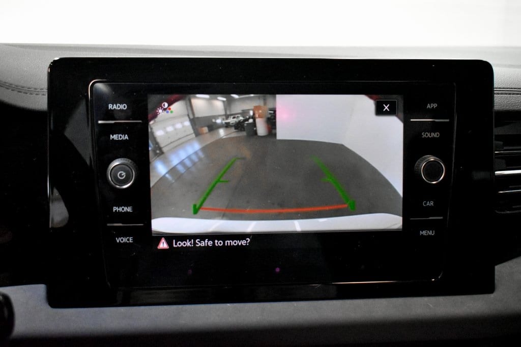 This Jetta is well equipped with 4-Wheel Disc Brakes, 6 Speakers, ABS brakes, Active Blind Spot Monitor, Air Conditioning, Alloy wheels, AM/FM radio: SiriusXM with 360L, Auto-dimming Rear-View mirror, Automatic temperature control, Brake assist, Bumpers: body-color, CloudTex & V-Tex Leatherette Seat Trim, Delay-off headlights, Driver door bin, Driver vanity mirror, Dual front impact airbags, Dual front side impact airbags, Electronic Stability Control, Emergency communication system: VW Car-Net Safe & Secure 5-year, Exterior Parking Camera Rear, Front anti-roll bar, Front Bucket Seats, Front Center Armrest, Front dual zone A/C, Front wheel independent suspension, Fully automatic headlights, Heated door mirrors, Heated Front Seats, Heated front seats, Illuminated entry, Leather Shift Knob, Leather steering wheel, Low tire pressure warning, Occupant sensing airbag, Outside temperature display, Overhead airbag, Overhead console, Panic alarm, Passenger door bin, Passenger vanity mirror, Power door mirrors, Power driver seat, Power steering, Power windows, Radio data system, Radio: MIB3 Composition Media w/8" Touchscreen, Rain sensing wipers, Rear anti-roll bar, Rear reading lights, Rear seat center armrest, Rear window defroster, Remote keyless entry, Speed control, Speed-sensing steering, Split folding rear seat, Steering wheel mounted audio controls, Tachometer, Telescoping steering wheel, Tilt steering wheel, Traction control, Trip computer, Variably intermittent wipers, and Wheels: 17" Twin 5-Spoke 2-Tone Machined Alloy.