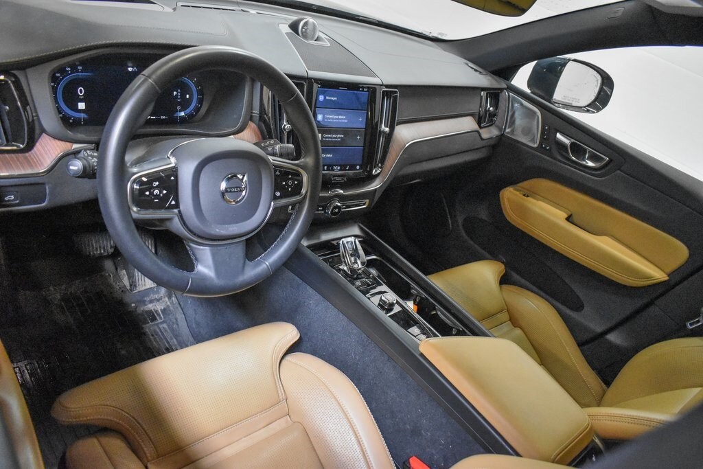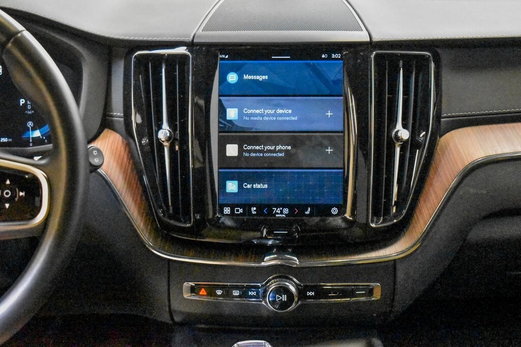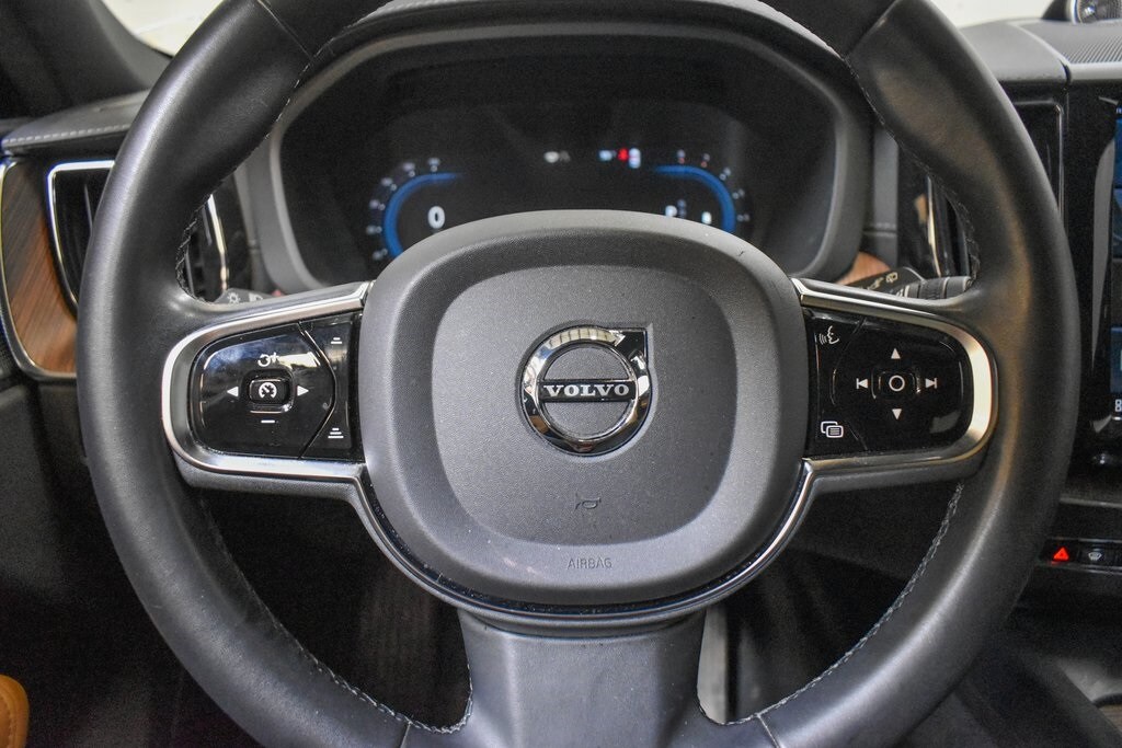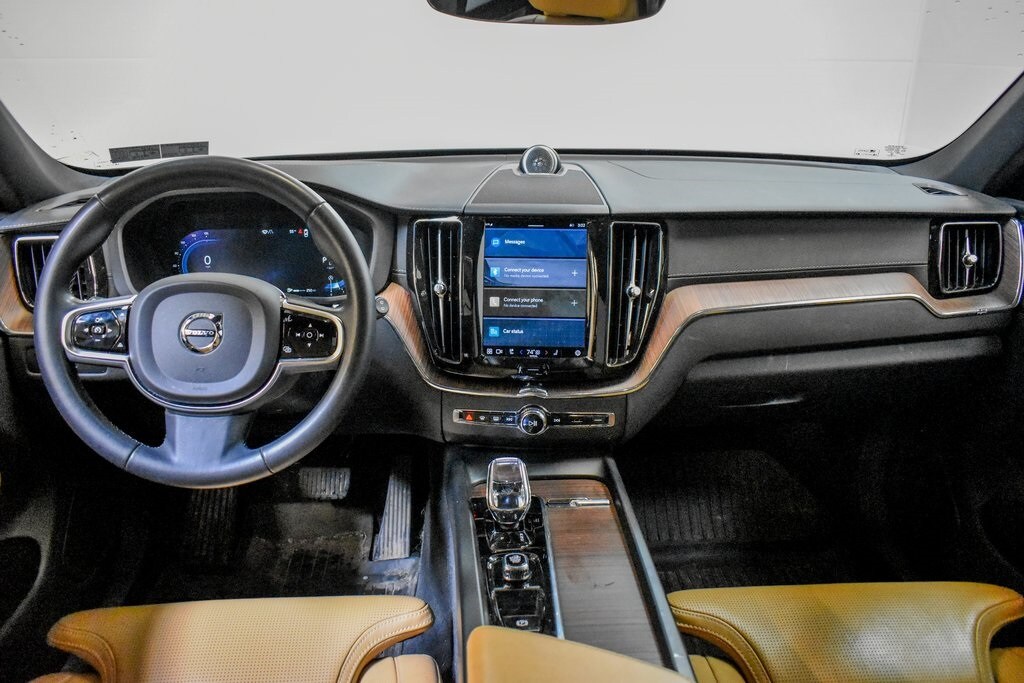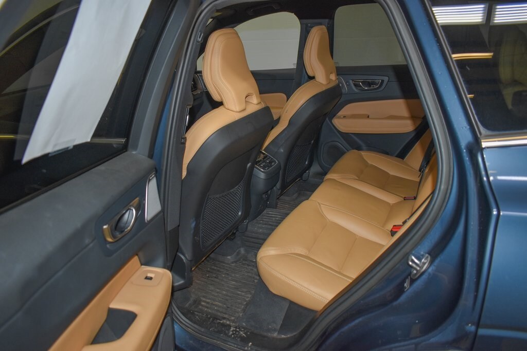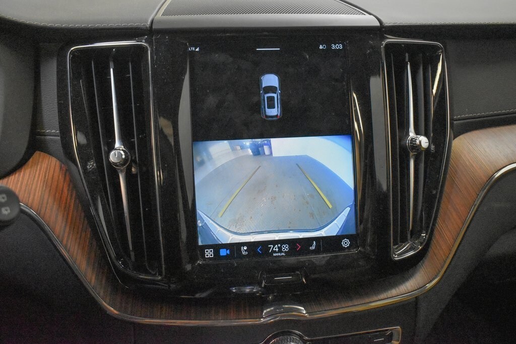 This XC60 is well equipped with harman/kardon® Speakers, Navigation System, 14 Speakers, 4-Wheel Disc Brakes, ABS brakes, Air Conditioning, Alloy wheels, AM/FM radio: SiriusXM, Anti-whiplash front head restraints, Apple CarPlay, Auto High-beam Headlights, Auto-dimming door mirrors, Auto-dimming Rear-View mirror, Automatic temperature control, Brake assist, Bumpers: body-color, Delay-off headlights, Driver door bin, Driver vanity mirror, Dual front impact airbags, Dual front side impact airbags, Electronic Stability Control, Emergency communication system: Volvo Cars App w/4 Year Subscription, Exterior Parking Camera Rear, Four wheel independent suspension, Front anti-roll bar, Front Bucket Seats, Front Center Armrest, Front dual zone A/C, Front fog lights, Front reading lights, Fully automatic headlights, Garage door transmitter: HomeLink, Genuine wood console insert, Genuine wood dashboard insert, Heads-Up Display, Heated & Ventilated Front Bucket Seats, Heated door mirrors, Heated front seats, Illuminated entry, Knee airbag, Low tire pressure warning, Memory seat, Occupant sensing airbag, Outside temperature display, Overhead airbag, Panic alarm, Passenger door bin, Passenger vanity mirror, Perforated Nappa Leather Upholstery, Power door mirrors, Power driver seat, Power moonroof, Power passenger seat, Power steering, Power windows, Radio data system, Radio: harman/kardon Premium Audio System, Rain sensing wipers, Rear air conditioning, Rear anti-roll bar, Rear dual zone A/C, Rear fog lights, Rear reading lights, Rear seat center armrest, Rear window defroster, Rear window wiper, Remote keyless entry, Security system, Speed control, Split folding rear seat, Spoiler, Steering wheel mounted audio controls, Tachometer, Telescoping steering wheel, Tilt steering wheel, Traction control, Trip computer, Turn signal indicator mirrors, Variably intermittent wipers, Ventilated front seats, and Wheels: 20" 5-Multi Spoke Black Diamond Cut Alloy.